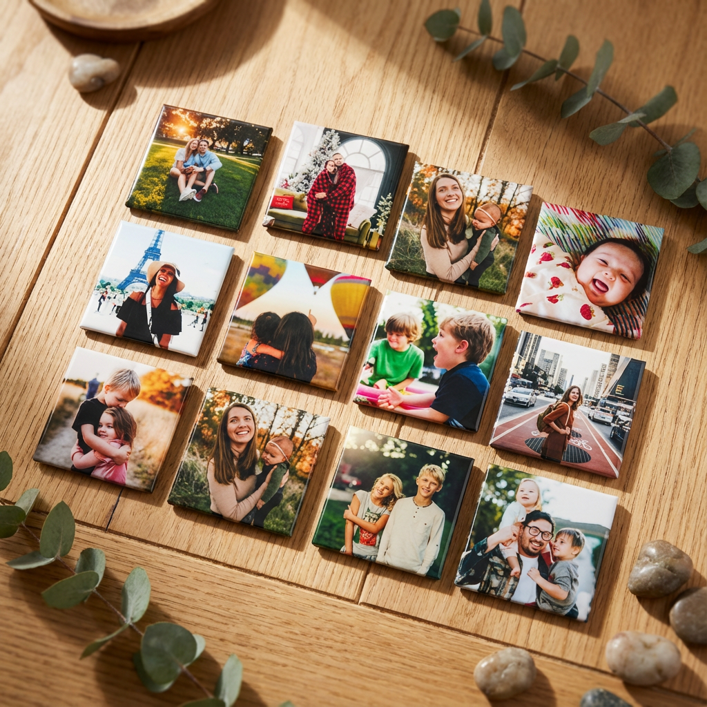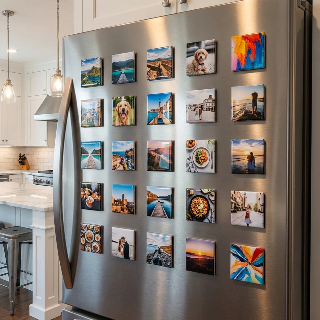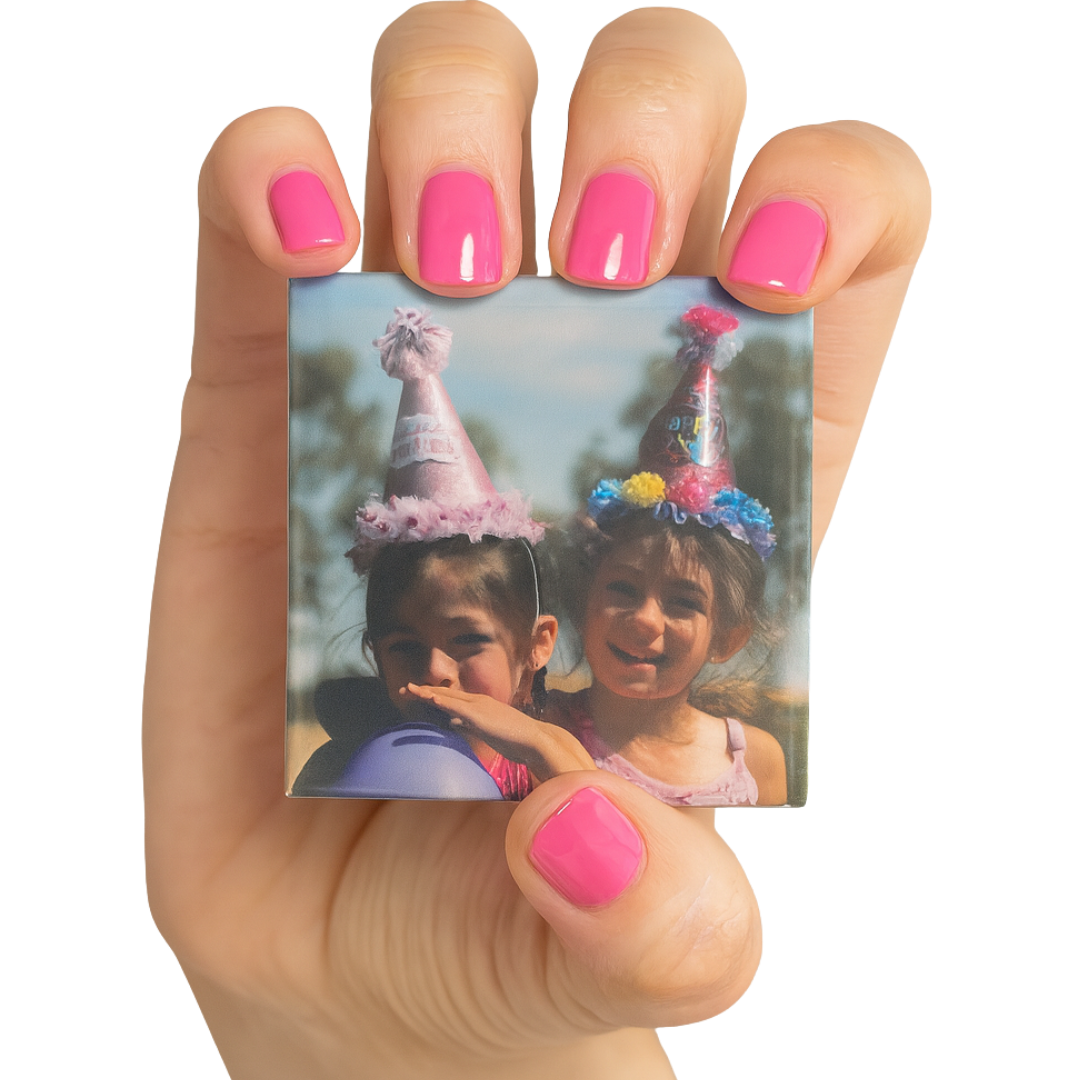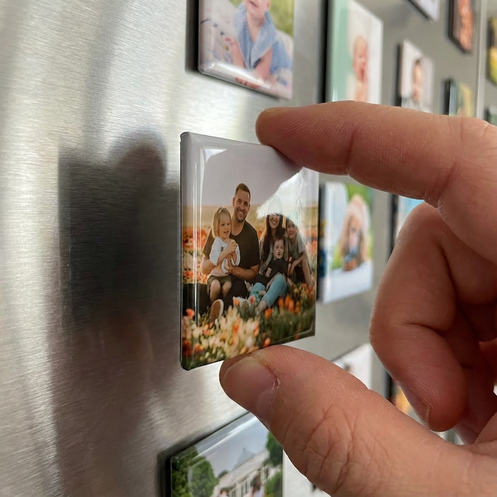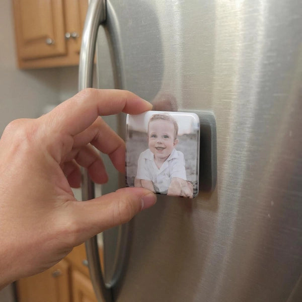 Our square magnets are designed for vertical or centered images — wide photos may get cropped awkwardly or leave empty space.