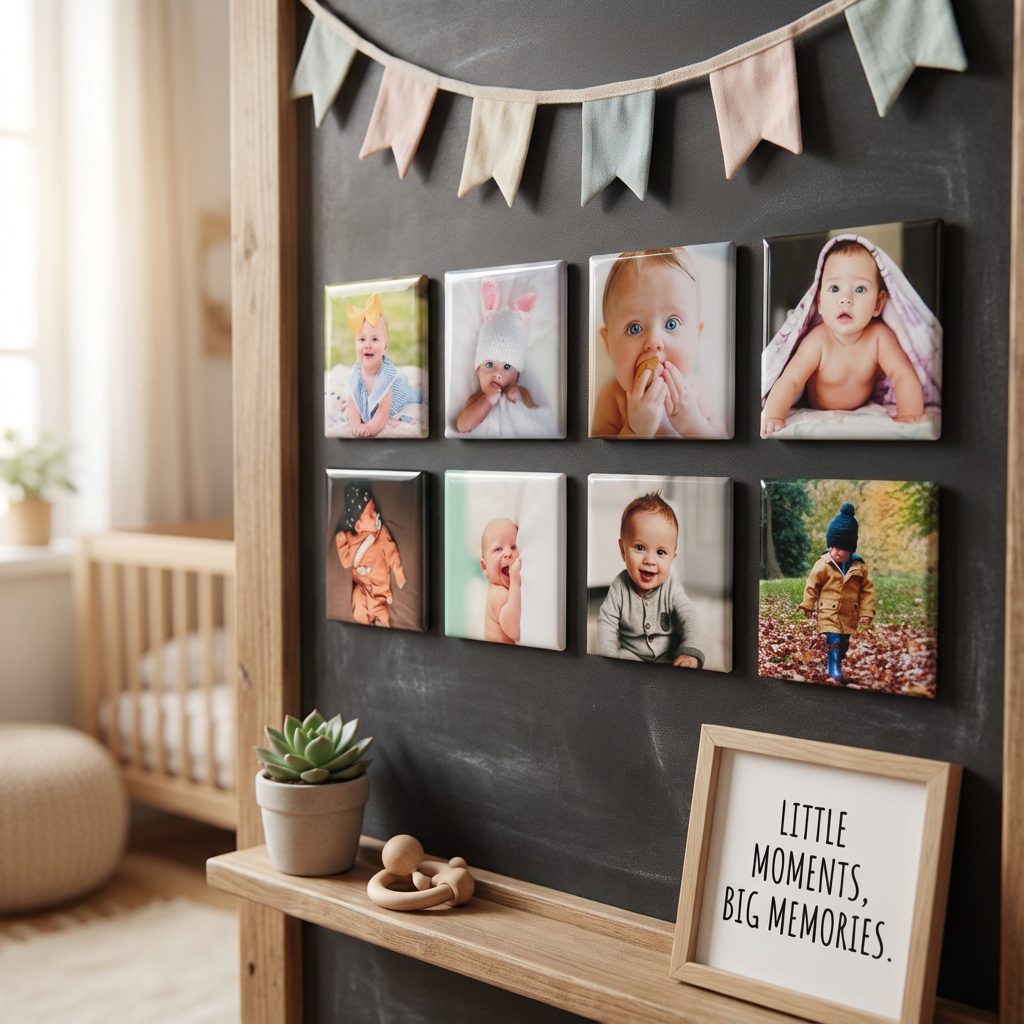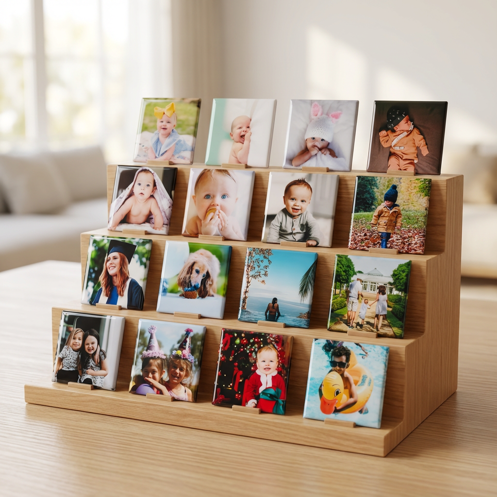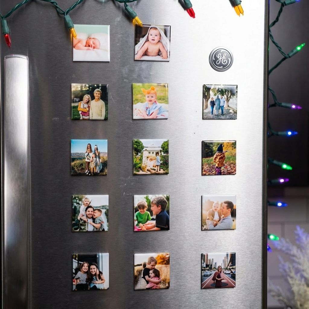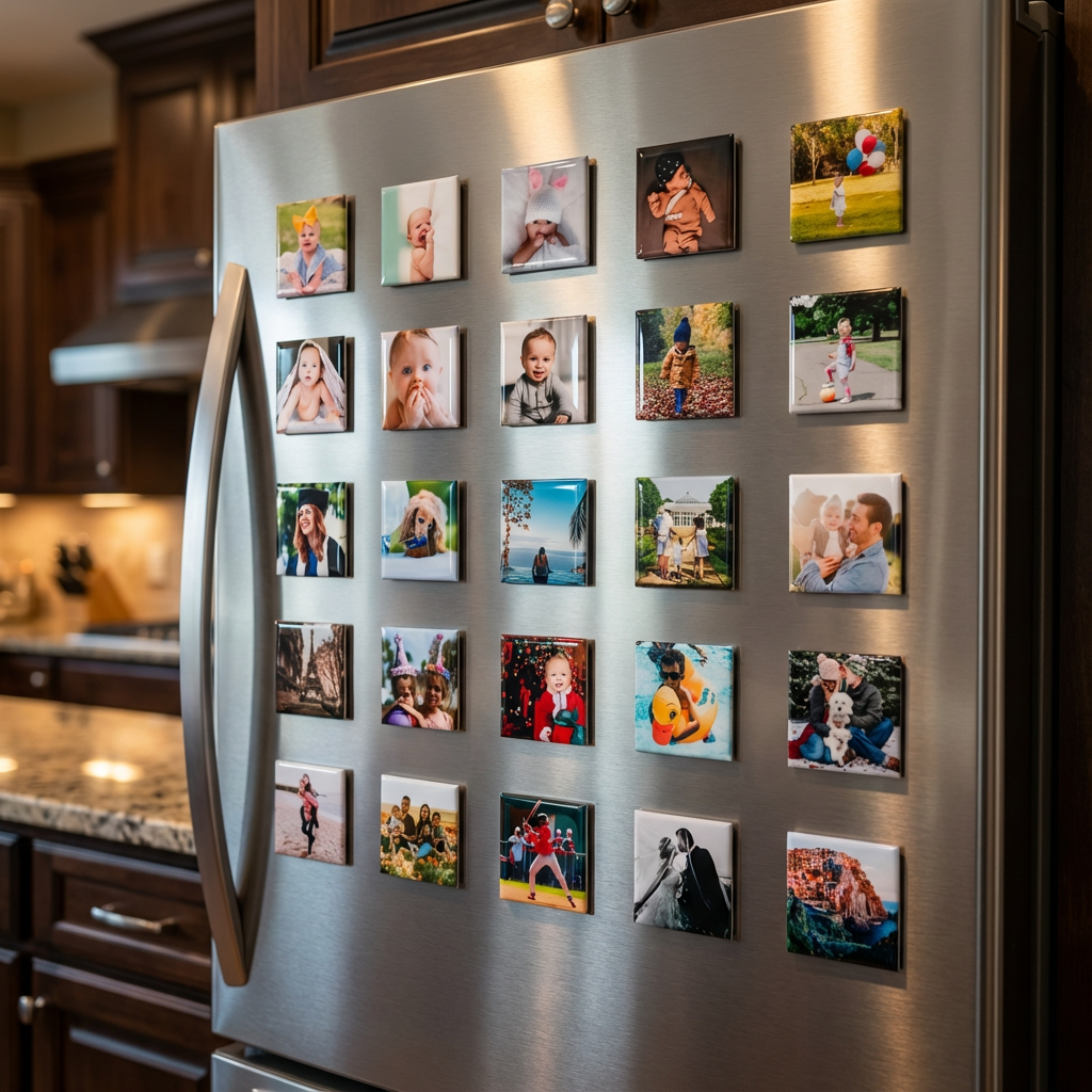 Our square magnets are designed for vertical or centered images — wide photos may get cropped awkwardly or leave empty space.